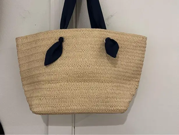 Neiman Marcus Straw Tote Navy Ribbon Straps - $34 - From Libby
