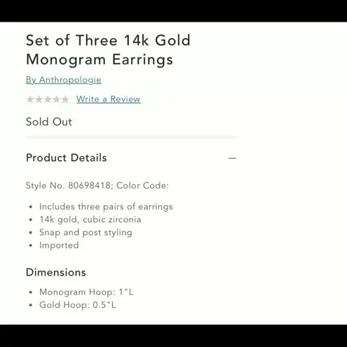 New set of three Anthropologie monogram earrings in 14k gold plated are the perfect addition to your... Show more