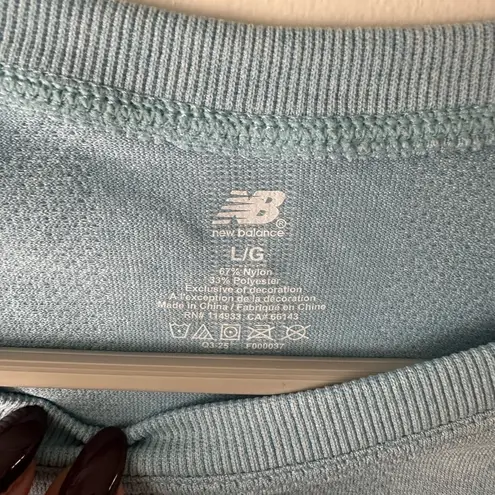 Sky blue crewneck with New Balance logo. Soft and versatile.