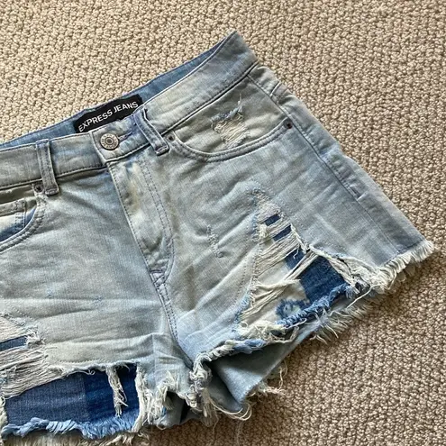 NEW Express Light Wash High Rise Destroyed Denim Jean Shorts Fringe Size 2 NWOT Brand new without t... Show more