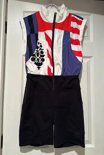 This medium-sized Free People Race To The Top one-piece romper features a high collar neck with a zi... Show more