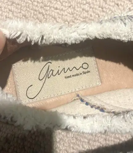 Espadrilles from Spain - new - handmade - bought in a popular store in Madrid called Casa Hernanz- perfect for spring and summer - blue and white - small 1.5 inch jute platform - fun detailing with fringe - size 37 - leather foot bed - leather and textile insole - rubber sole