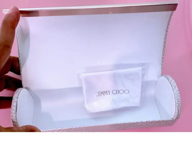 NEW JIMMY CHOO Eye/Sunglasses Hard Case+Cloth Cream Tan Faux Snakeskin Flip Top White - $21 New With Tags - From Nyx