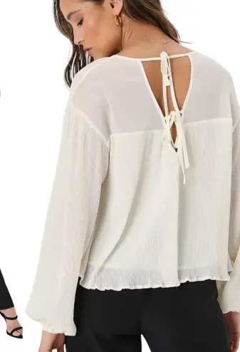 NEW Lulus Perfect Presentation Cream Long Sleeve Tie Back Top Ivory Size S New without tag Has pla... Show more