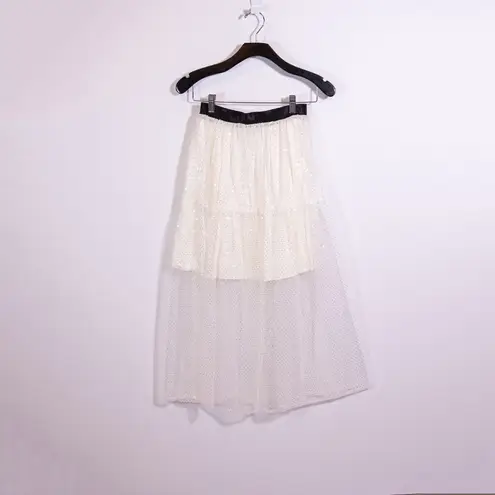 NEW Maje Jiris Sequin Embellished Tulle Mesh Pull On Midi Skirt In White Black - $225 New With Tags - From Galore