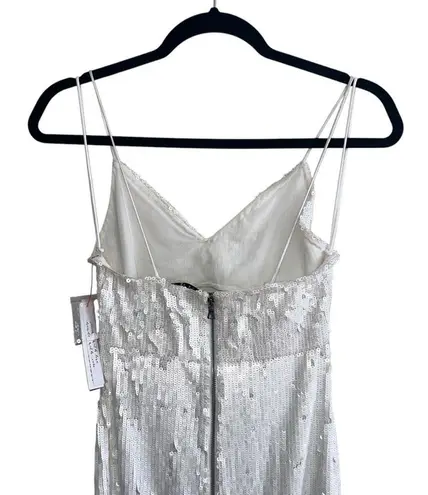 is such a stunning piece! This spaghetti strap gown features a front cutout detail, tonal sequin emb... Show more