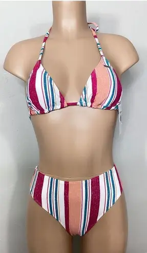 New. Roxy striped bikini set. Multicolored stripes in a vertical pattern. Sliding triangle top with... Show more