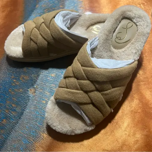 Sam Edelman Vaughn Faux Fur Lined Sandal Slides. Womens size 8 Classic Camel color Twill Woven top... Show more