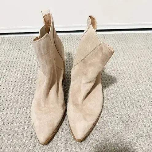 Smooth leather upper Ankle-high shaft with elastic side gored panels Pointed toe Pull-on style with... Show more