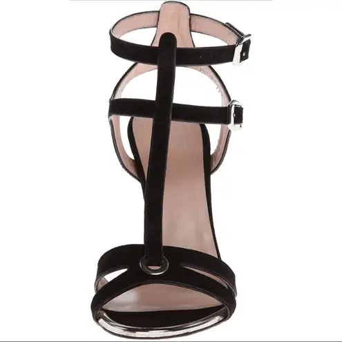 NEW! Authentic Stuart Weitzman 'Accent' Black Suede T strap high heel sandals. Modern T-strap sand... Show more