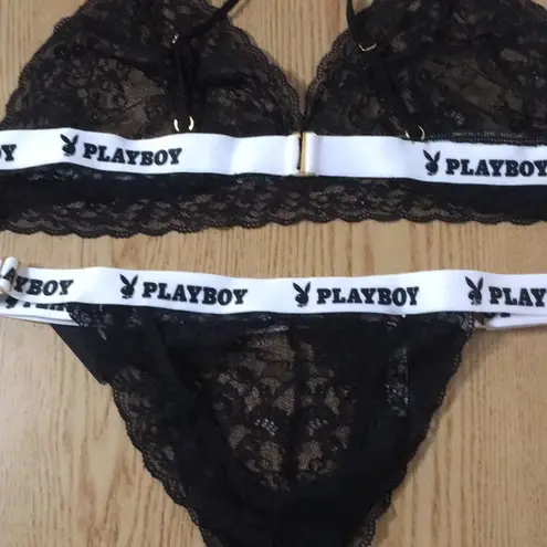 New Super Sexy Playboy 2Pc Lacey Bra & Open Back Thong Set Color Black white Size 1X/2X Stretchy... Show more