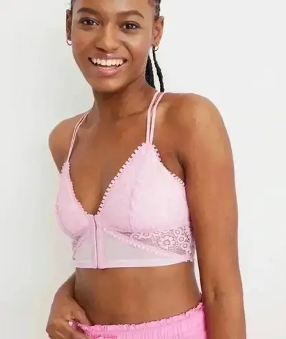 . Aerie Joy Lace Padded Longline Bralette in violet willow. This has clasps on the front. Have a b... Show more