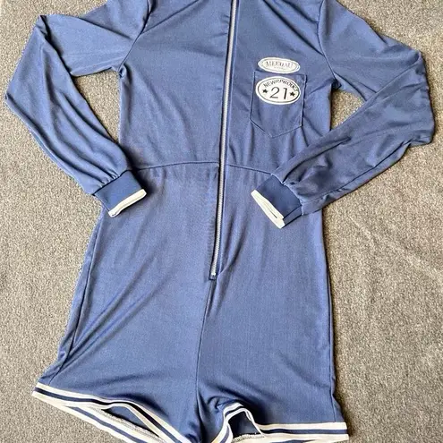 New XS Vintage Style Sexy Babe High Elastic Jumpsuit with Letter Patch and Zipper Shorts Description: - This new jumpsuit in size XS features a vintage style with high elastic fabric for a snug, comfortable fit. - Trendy letter fabric patch adds a chic touch to the design. - Full zipper design allows for easy wear and removal. - Embrace the sexy babe vibe and stand out in any crowd. - Size details: Pit to Pit 15 inches, Length 28 inches. - Material: Polyester. Hand measurements may have a margin of error ranging from 0.5 to 1 inch.