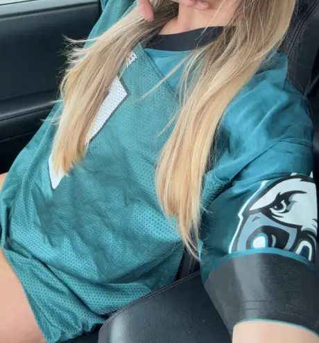 Perfect for game days Minor peeling on the eagle on the right sleeve as week as on the back