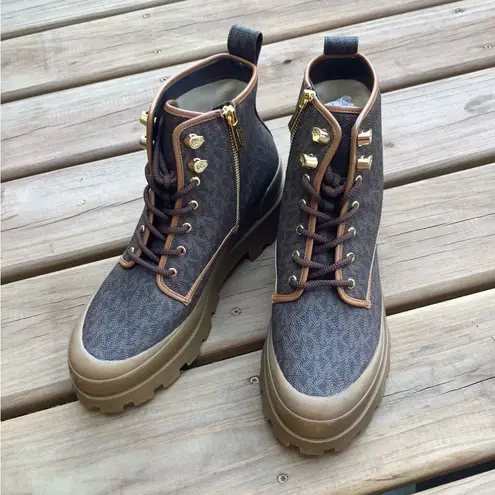Very attractive, modern and stylish authentic Michael Kors combat booties on chunky soles. Practical... Show more