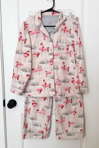 Nick & Nora Womens Flannel Pajama Set Size Medium Flamingo Airstream Holidays Pink - $36 - From Annelise