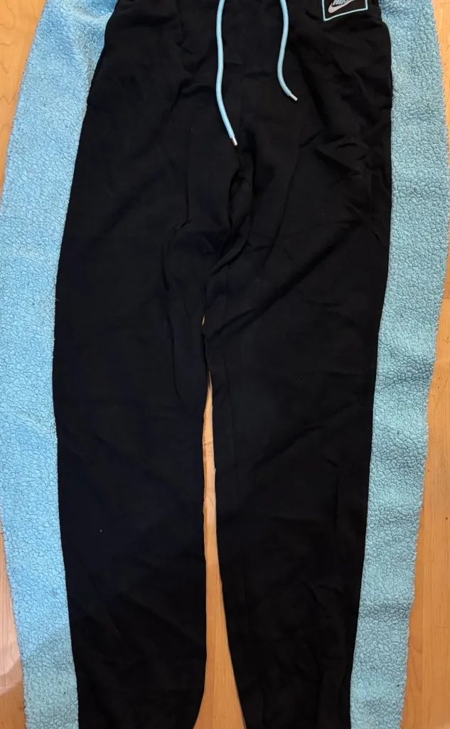 Stylish Nike joggers with black base and blue side panels. They are regular sweats material and th... Show more