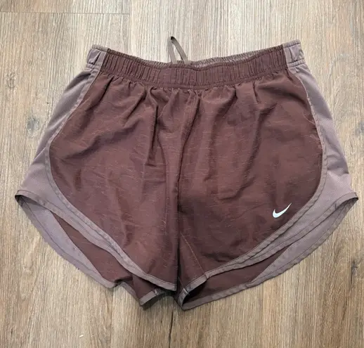 Women's Nike Dri-FIT running shorts in a rich brown hue. These athletic shorts are designed for perf... Show more