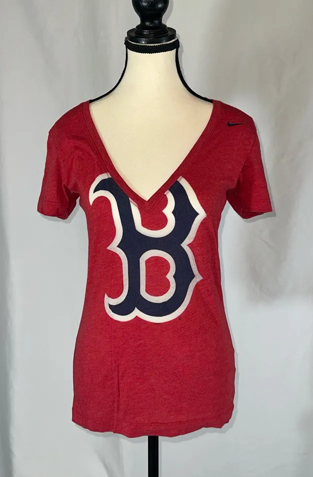 Step up your game day attire with this vibrant Nike MLB Boston Red Sox T-shirt. Designed for the devoted fan, this ladies' tee boasts a bold red hue that captures the spirit of the team. The comfortable blend of cotton and polyester ensures a soft feel against the skin, while the short sleeves make it a perfect choice for those warm summer days. The shirt features a stylish V-neck cut that complements the regular fit, allowing for easy movement and a classic silhouette. Machine washable for effortless care, this piece is not just about team pride but also about comfort and durability. Whether you're at the game or just showing your support around town, this T-shirt is a must-have for any Red Sox enthusiast.