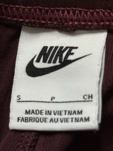 Nike maroon sports bra with a stylish crisscross back and a unique peach-colored triangular insert,... Show more