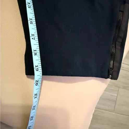 Black Nike capris with elastic waistband. Features side pockets and ankle zippers. Ideal for footwor... Show more