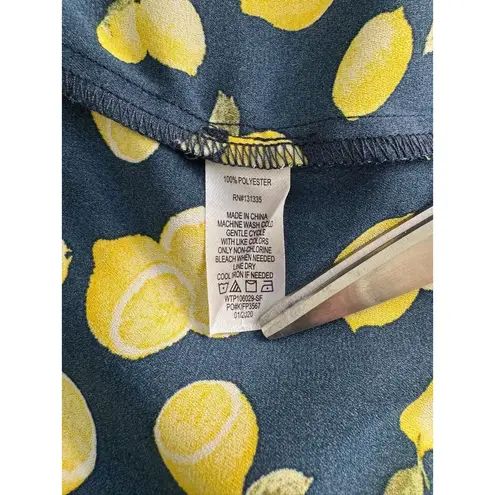 Nine Britton Lemon Print Navy Tie-Front Blouse | Size Medium Fresh and playful, this Nine Britton bl... Show more
