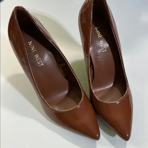 Step into sophistication with Nine West's brown heels, showcasing a sleek pointed-toe design and a m... Show more