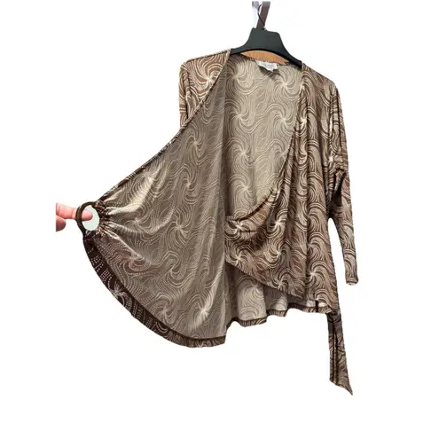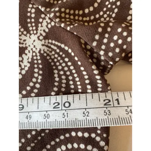 Elegant brown blouse featuring a swirling white pattern, creating a visually appealing and sophistic... Show more