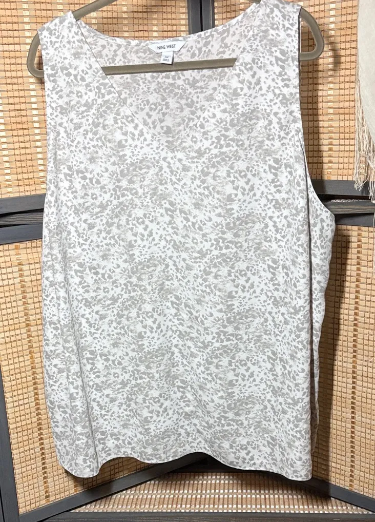 Elegant floral tank top by Nine West. Features a subtle gray pattern. Ideal for casual outings.