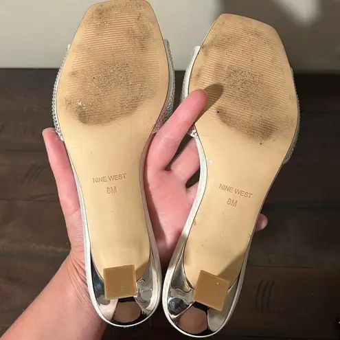 Nine West square toe Silver block heel rhinestone heels #glamourous #heels Good condition any wear i... Show more