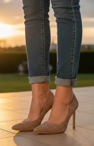 Brand-new Nine West Tatiana pumps in a neutral natural snake-embossed leather. These size 9 pointed... Show more