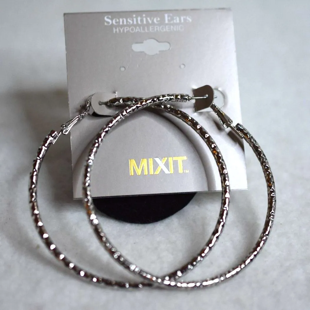 NIP Mixit Boho Statement Textured Silver Tone 2" Lever Back Post Retro Earrings - $10 - From Chrystal