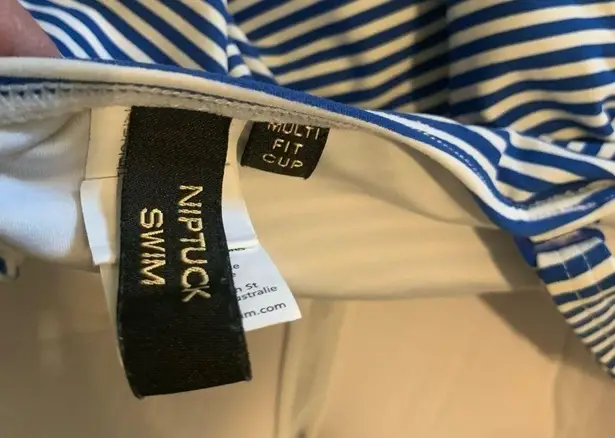 Nip Tuck One Piece Swimsuit Stripe Bikini Nautical Striped Joanne Paloma 10 L Blue - $16 - From Evelyn