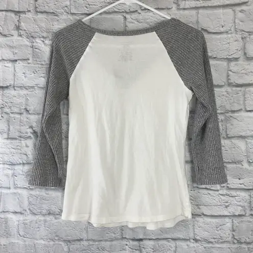 No Boundaries 3/4 sleeve quarter button top w/ribbed grey sleeves & white tee Sm Multiple - $12 - From Joanne