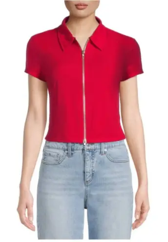 No Boundaries NoBo Juniors Womens Top Sz L 11 13 Red Zip Up Polo Ribbed Knit GENERALLY SHIP SAME OR... Show more