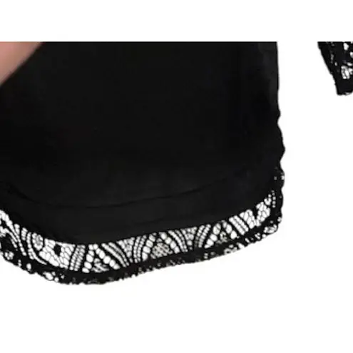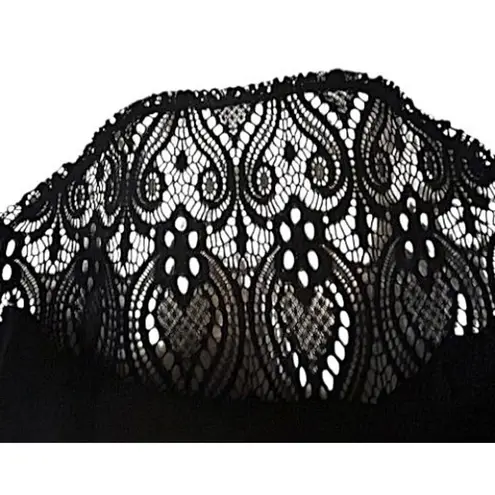 Soft black lace with lining at torso Sheer lace at neckline, sleeves, & hem Romantic V-neck with s... Show more