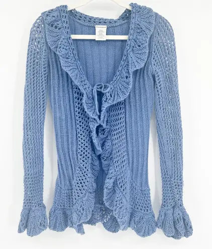No Boundaries Y2K Grunge Crochet Open Knit Ruffle Tie Front Long Sleeve Cardigan Sweater Size Small... Show more