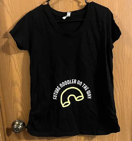 Noodles & Company “Future Noodler on the Way” Black short sleeve maternity shirt Side ruching for g... Show more