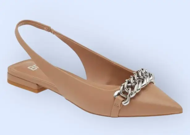 Fit True to size Details & care: A sleek chain highlights the pointy toe of a graceful slingback fla... Show more