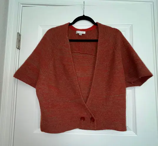 Nordstrom Collection Button Front Wrap Short Sleeve Ribbed Cashmere Sweater Top Size M Color Orange,... Show more