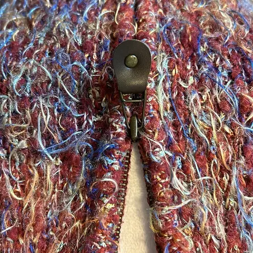 EUC with no rips, stains or flaws Super unique eyelash style women’s jacket Deep red base color wi... Show more