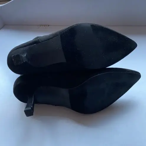 Open Edit Little Black Booties With Rhinestone Tassels Pointed Toe Faux Suede Faux-suede feel, soft... Show more