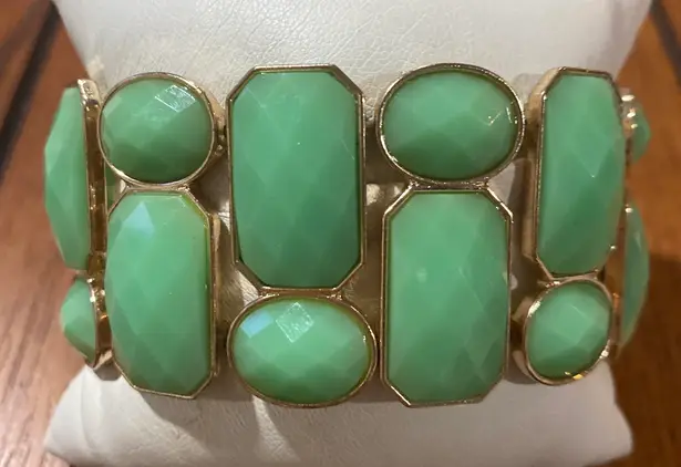 This beautiful bracelet is brand new with green stone and gold accents. The earrings are sold separ... Show more