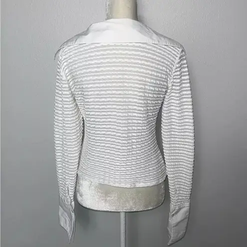 Super cute white button down, stretchy with hidden snaps, open collar, funky sleeves Size 16 Brand n... Show more