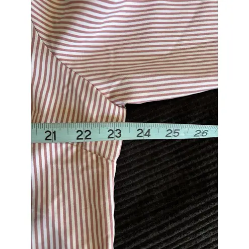 The Notations Button Up Striped Long Sleeve Chiffon Blouse in size 2XL is a stylish and versatile addition to any woman's wardrobe. It is 23.5" pit to pit and 29" length. Made from a blended fabric of polyester and spandex, this blouse is lightweight, breathable, and easy to care for. The collared neckline, button closure, and striped pattern give it a classic, preppy look perfect for travel, casual outings, or workwear. With a relaxed fit and a regular size type, this blouse is comfortable and flattering. The addition of pockets adds a practical touch to this wardrobe staple, suitable for all seasons. (2824)