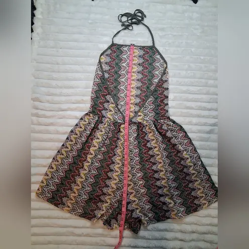 Colorful ASOS dress with a zigzag pattern. Features black, red, green, and cream tones.