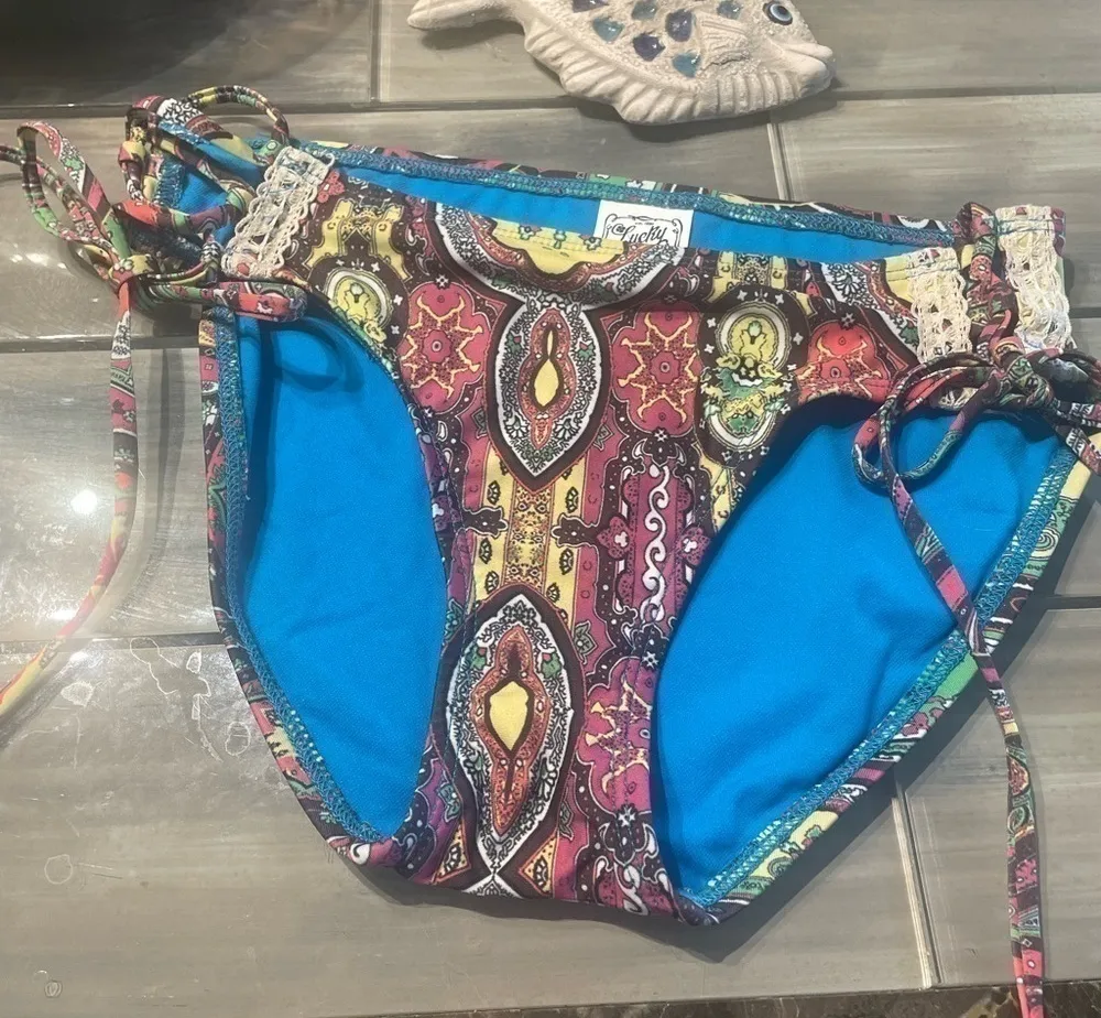 Lucky Brand Multi color mixed design Paisley Bikini Bottoms Hipster Fit with lace and side lace-up b... Show more