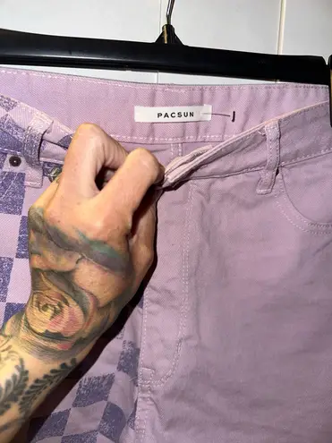 NWOT PacSun Two-Tone Checkerboard High Waisted Denim Festival Shorts In Lilac Purple Size 28 - $50 - From Shaquelia