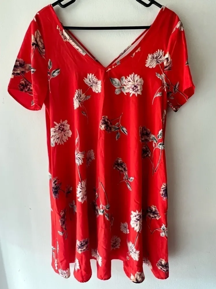 Beautiful red/orange shortsleeve dress. Has cross-cross strap detail on the back. Lightweight, gives... Show more