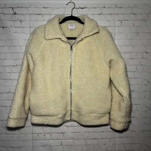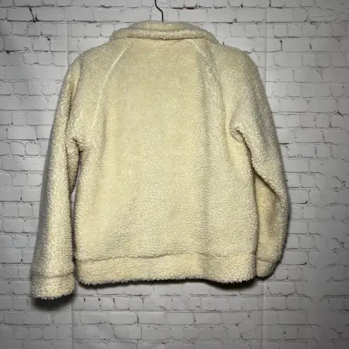 New without tags. Cream fuzzy sherpa zip up jacket for women. This outerwear piece features a full z... Show more